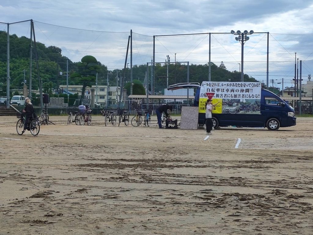 臨場感溢れる、再現実演。自転車に関する法律の解説と危険性。