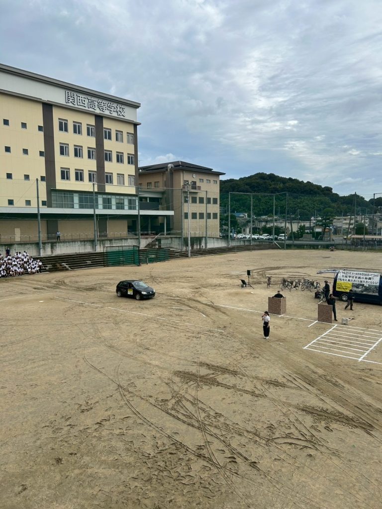 全国共済農業共同組合連合会(JA)岡山県本部 及び 岡山西警察署 を講師にお迎えしスタントマンによるリアルな交通事故の再現実演をしてくれました!