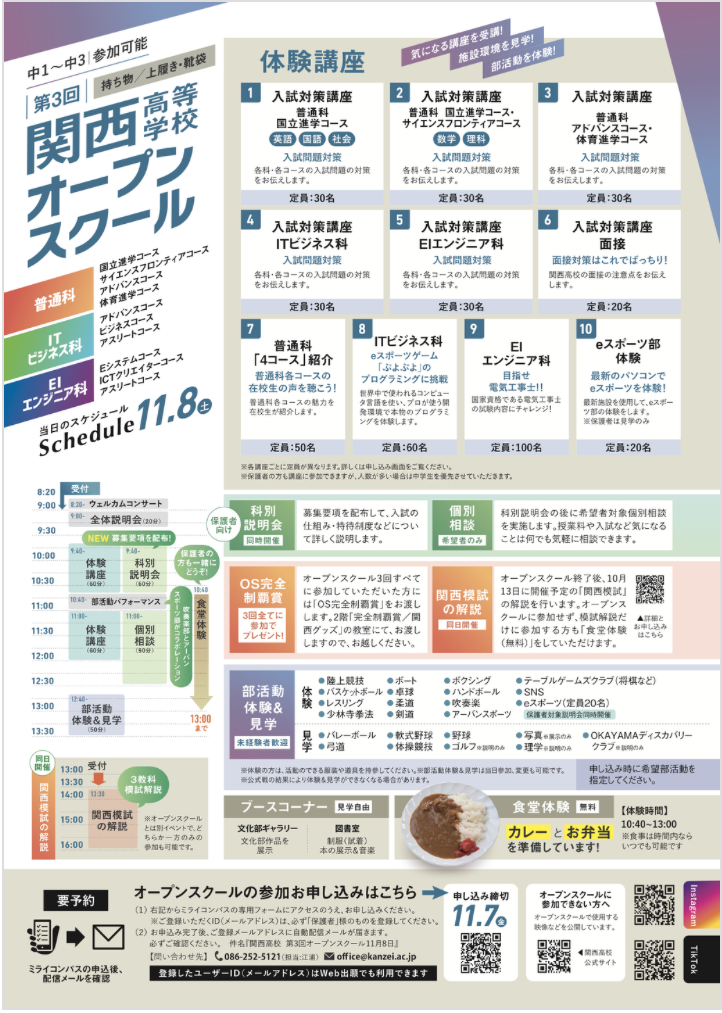 11月8日(土)【第3回 関西高等学校 オープンスクール】を開催します🌈✨