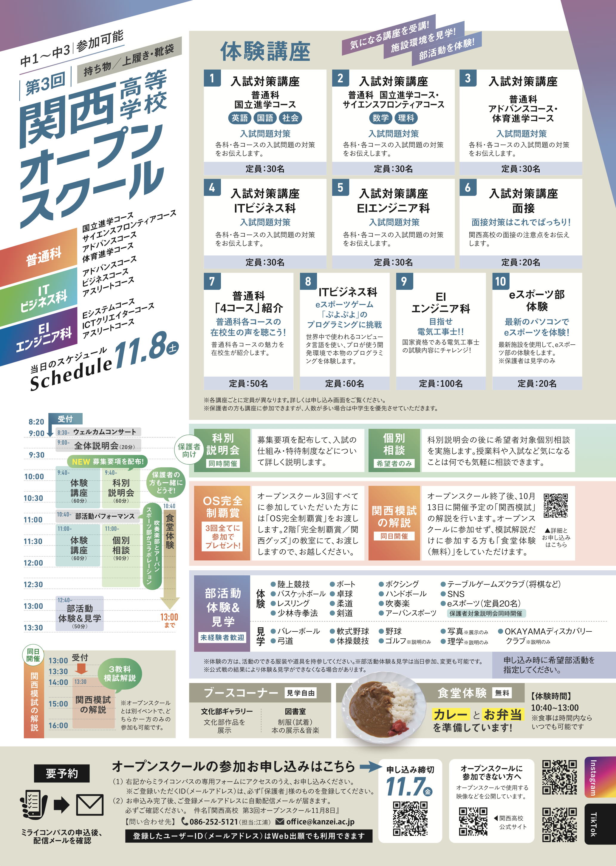 - 教育内容、科・コースの特徴、入試の仕組み、学費、入試問題、特待制度、個別相談も承ります。