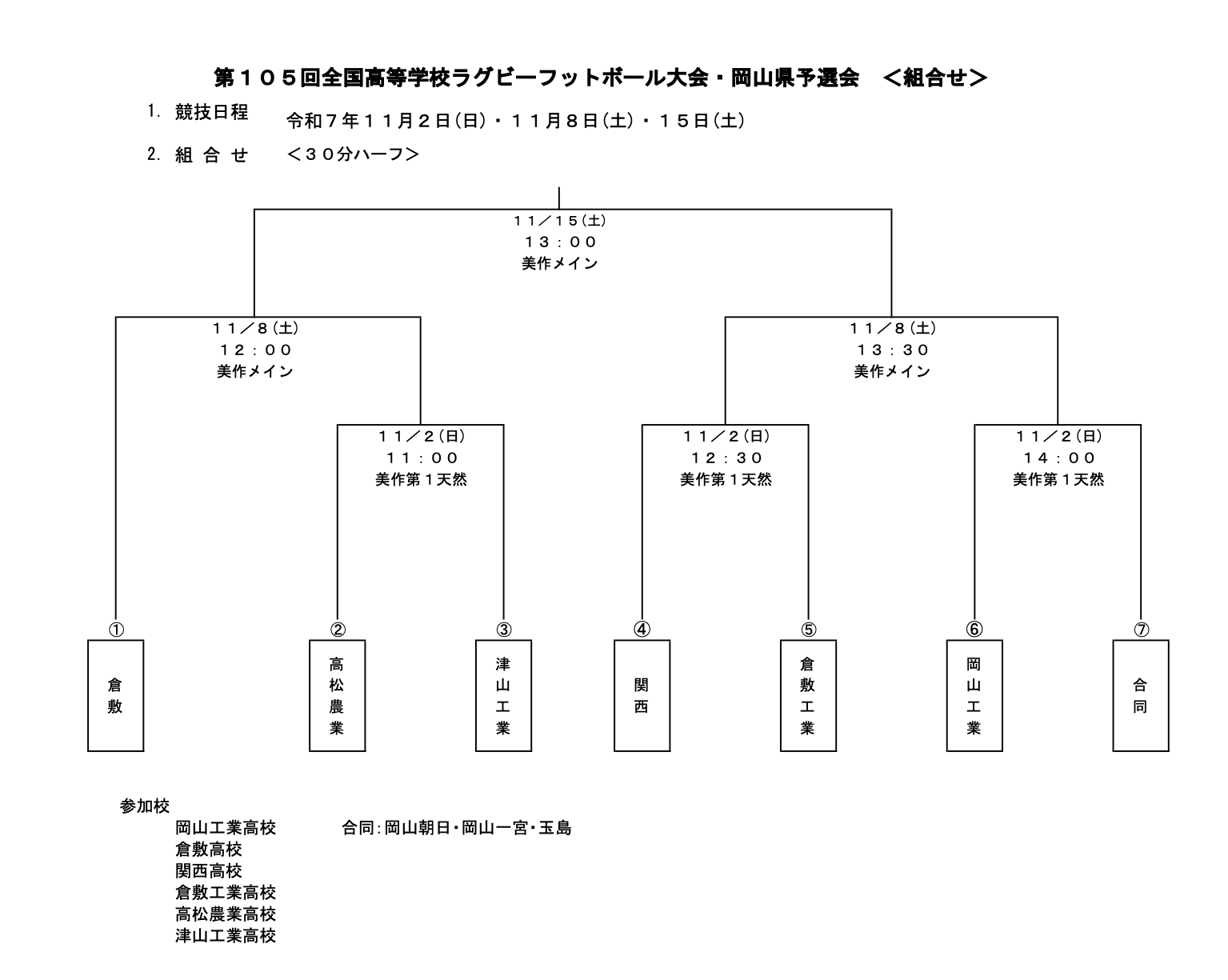 第105回全国高等学校ラグビーフットボール大会・岡山県予選会 組み合わせ が決定しました!