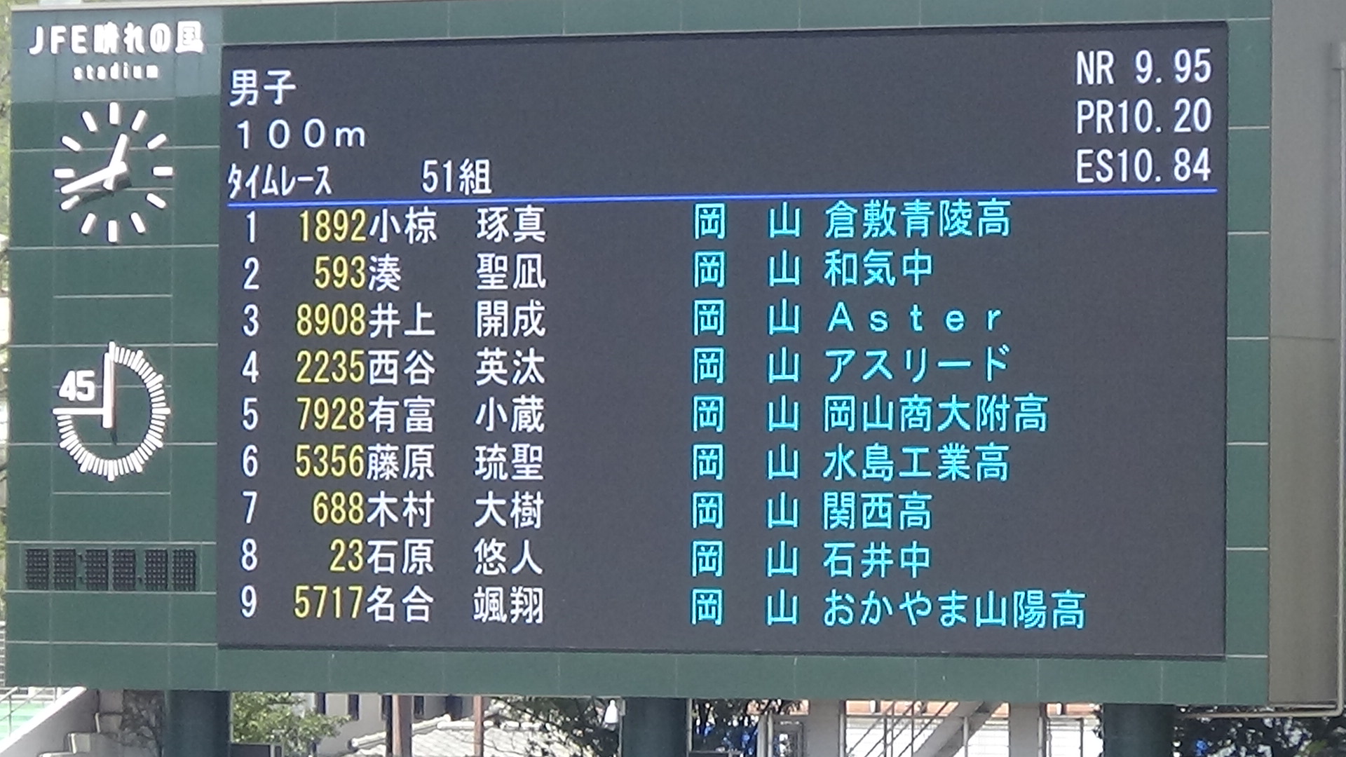 51組 7レーン 木村(1年) 12.09(+4.0) 9着