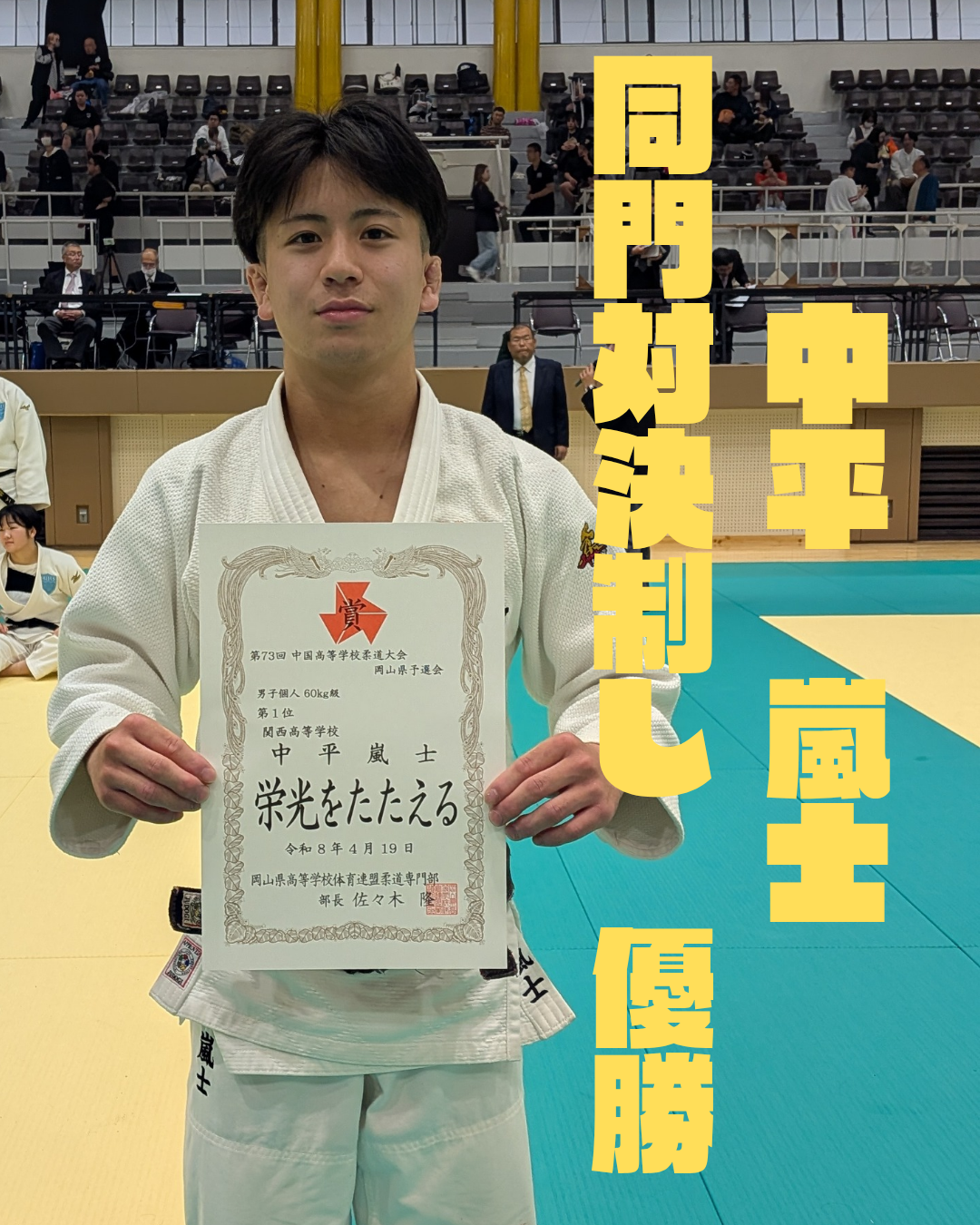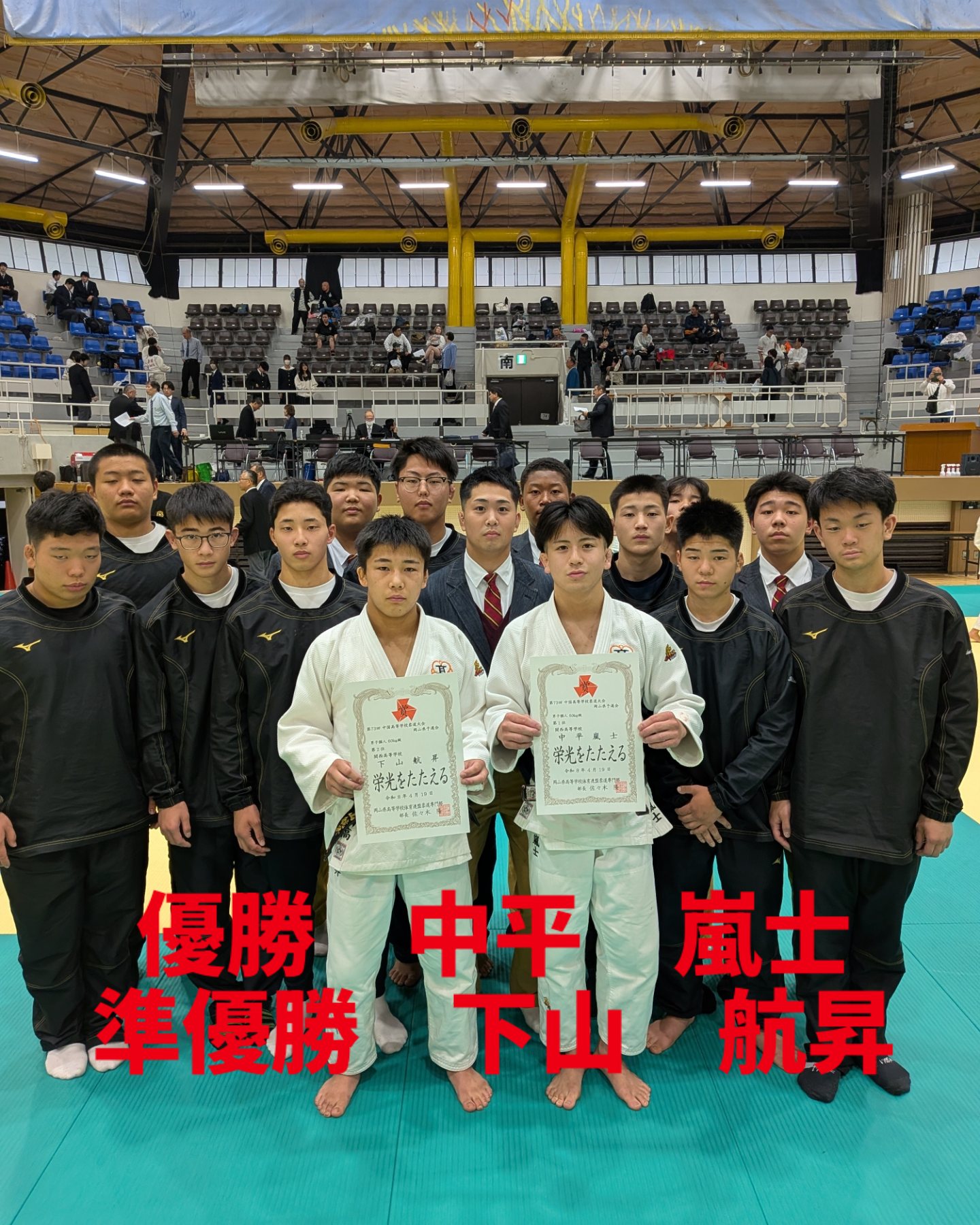 男子個人60kg級において、中平嵐士が優勝、下山航昇が準優勝という結果を収めました。