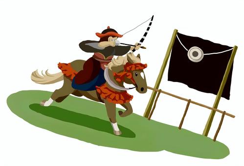 12往復の競走で見事優勝した騎手は、仕上げとして弓矢を携え、