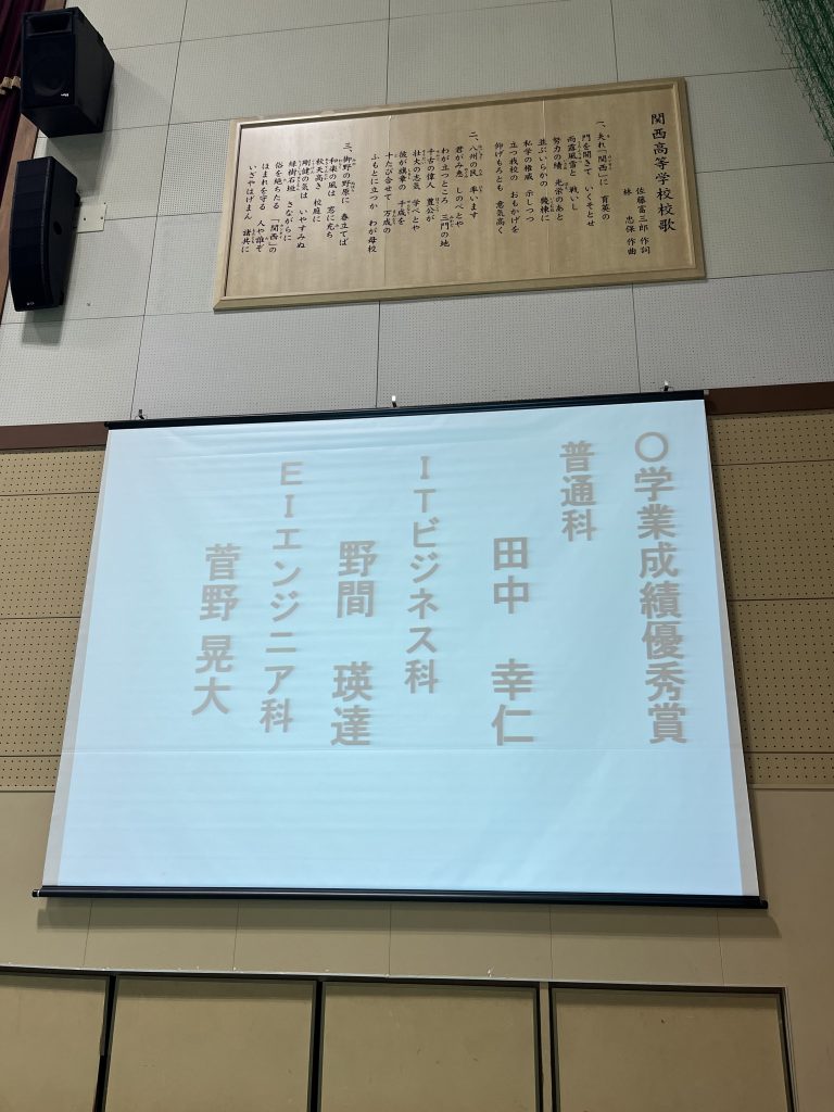『敢為表彰式』とは3年生を対象にこれまでの3年間を振り返り、各種表彰を行う式典です。
