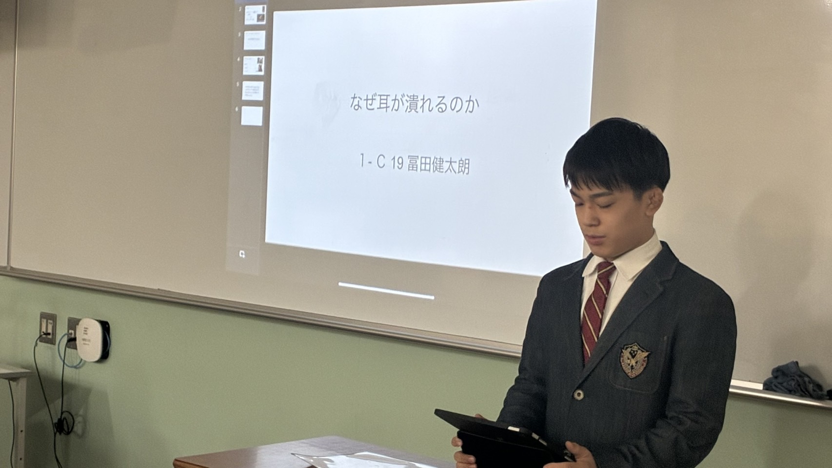 写真は普通科1年C組の教室内での発表の様子です!