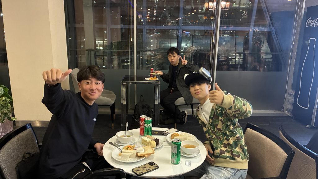 それでも、ドンムアン空港からスワンナプーム空港まで バスで移動する道中、車窓からバンコクの街並みを眺めることができ、 スワンナプーム空港のラウンジでは、最後の夕食をみんなで囲みました。