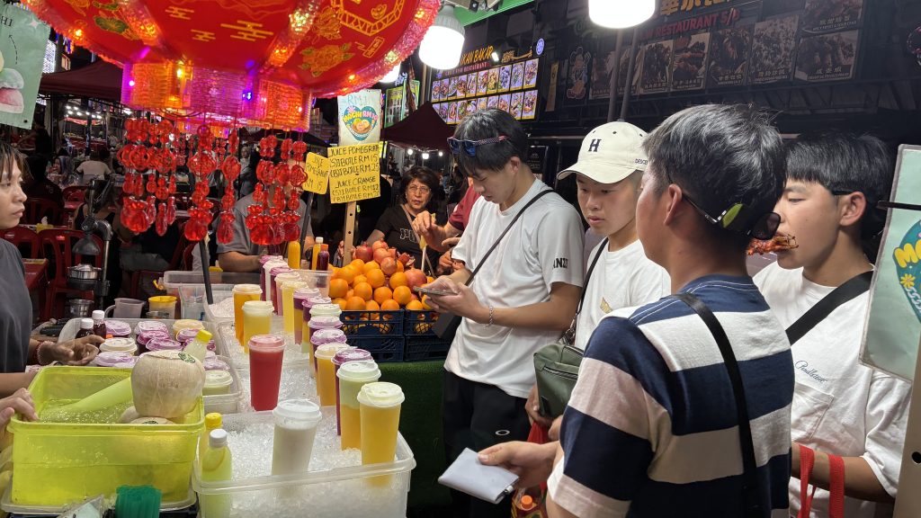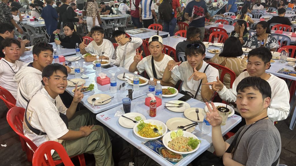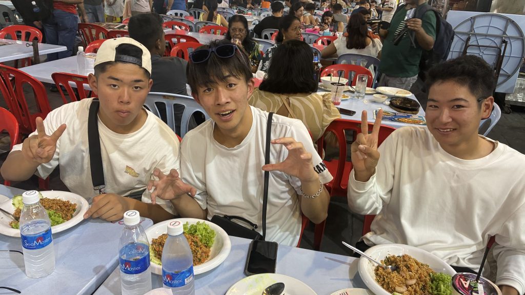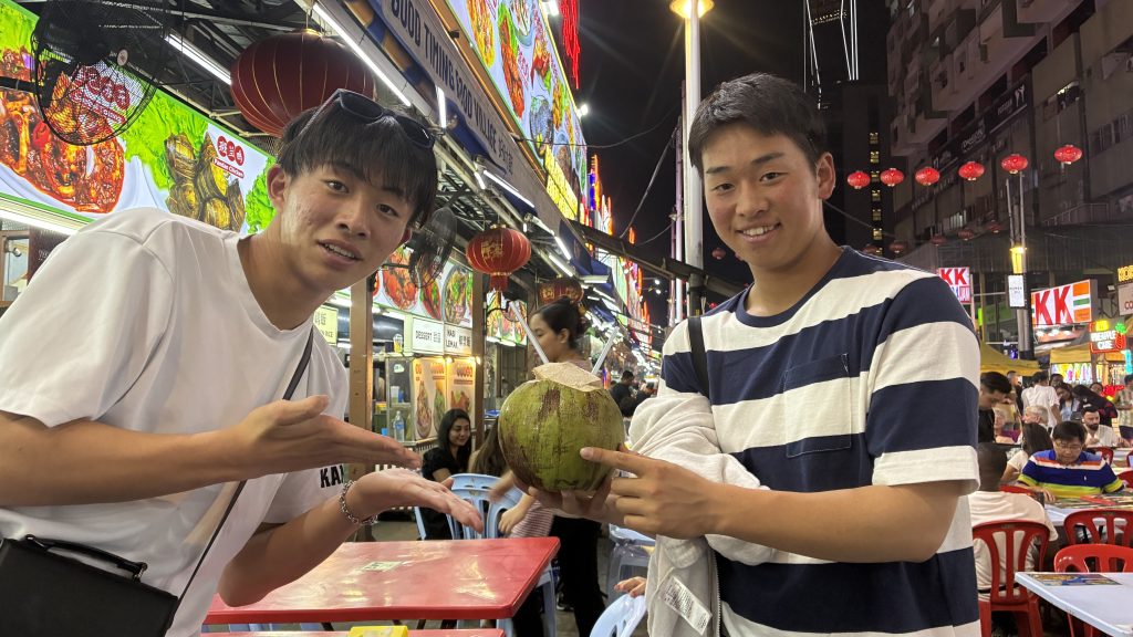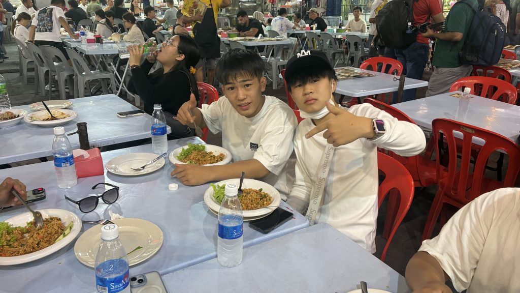 ホテルの目の前には、マレーシア最大規模の夜市 「Jalan Alor(ジャラン・アロー)」 が広がり、色とりどりの屋台や明るいネオンに、到着直後から生徒たちは驚きと興奮の表情を見せていました。