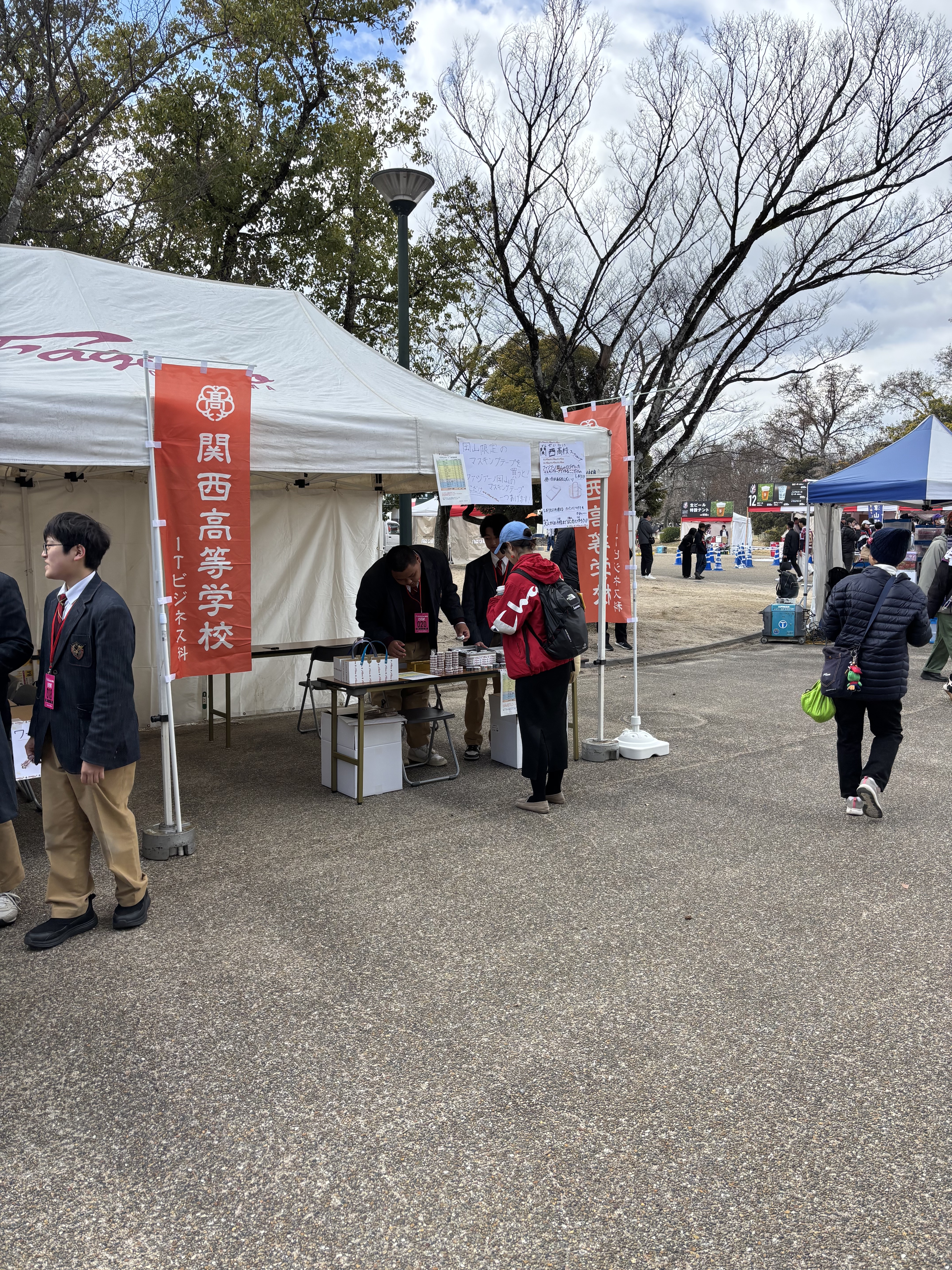 関西高校 ITビジネス科の生徒が、倉敷の名産品であるデニムやマスキングテープの販売と、