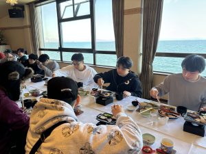 三崎港から佐賀関港へ到着。その後、昼食会場へ。