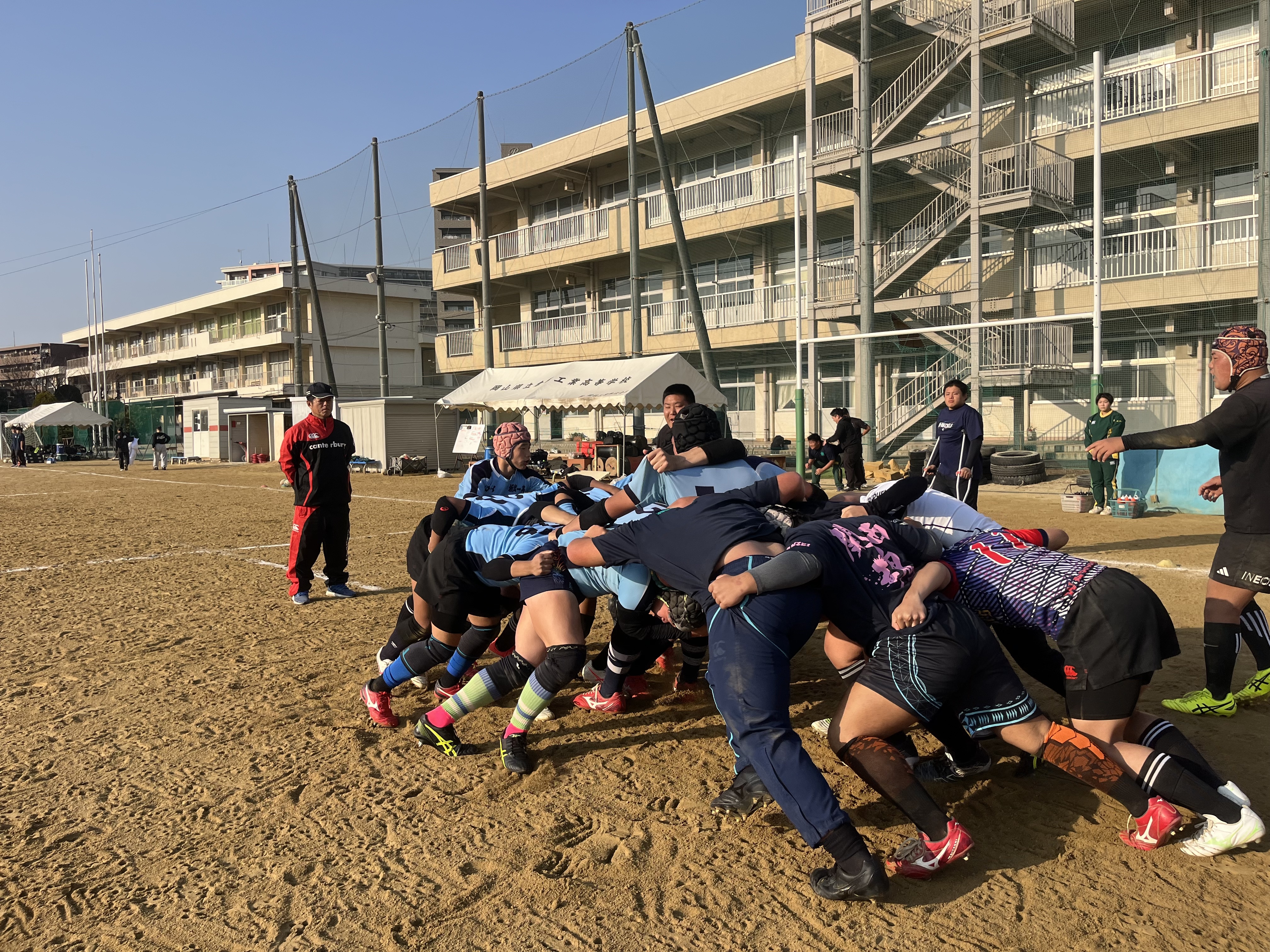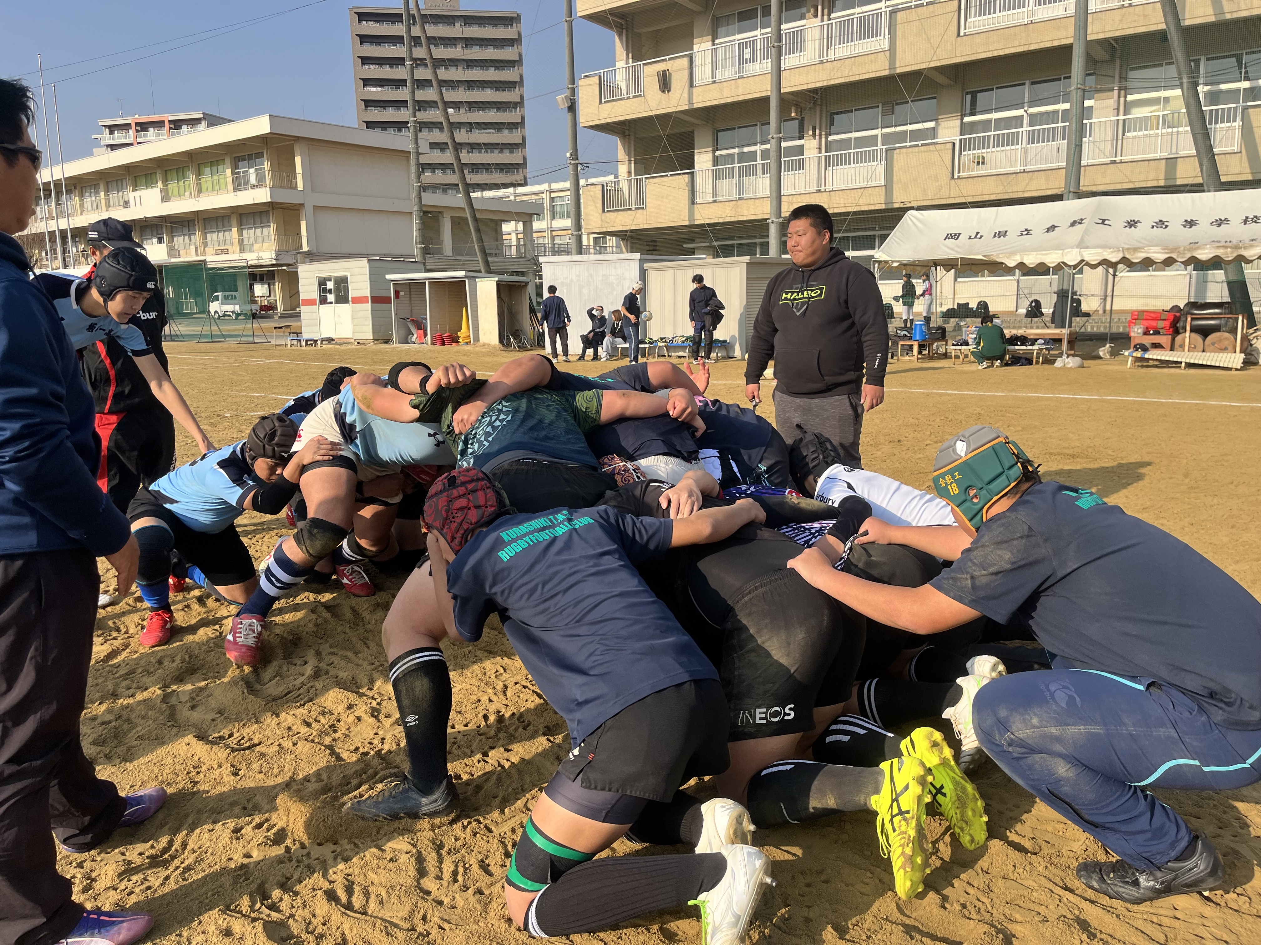 1月17日(土) 倉敷工業高校グランドにて、倉敷工業高校さん、坂出第一高校さんとユニット・練習試合を行いました。